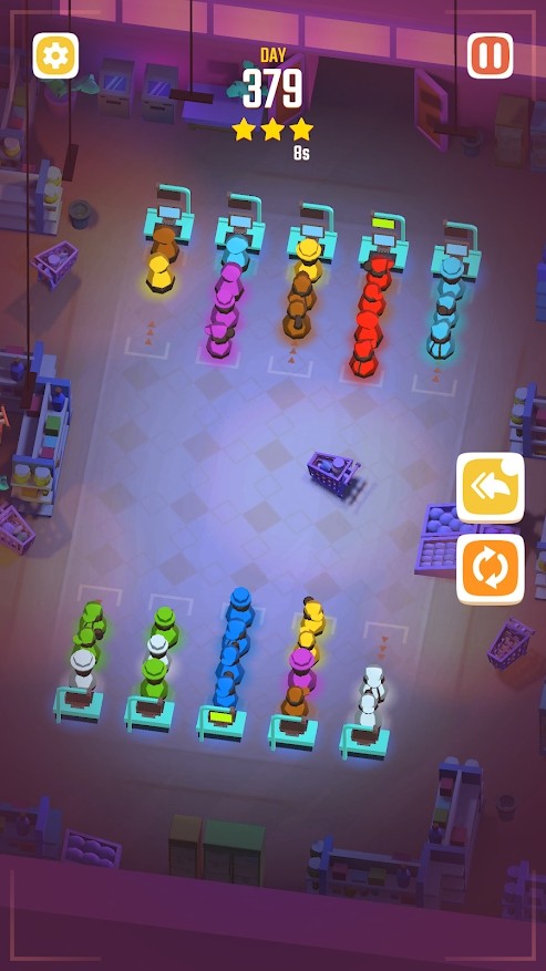 核心玩法聚焦于色彩分类的纯粹乐趣,需要玩家仔细观察布局特点,运用空间想象力规划最优移动路线。