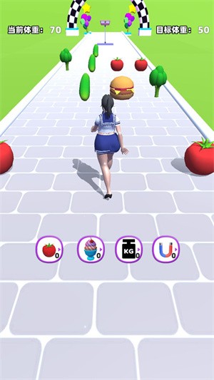 通过跑酷的方式来减肥,你需要帮助小姐姐收集健康的食物来控制体重。游戏巧妙地将健康饮食知识融入跑酷玩法中,让玩家在娱乐中学习营养搭配。途中布满了各种各样的食物,远离那些高热量的,尽可能获得低脂低油的。每种食物都会实时影响角色的体重变化,需要玩家快速做出判断。冲破无数的阻碍,不断的减少你的体重,最终完成指定的目标就可以过关。随着关卡推进,障碍物会越来越复杂,考验玩家的反应能力。