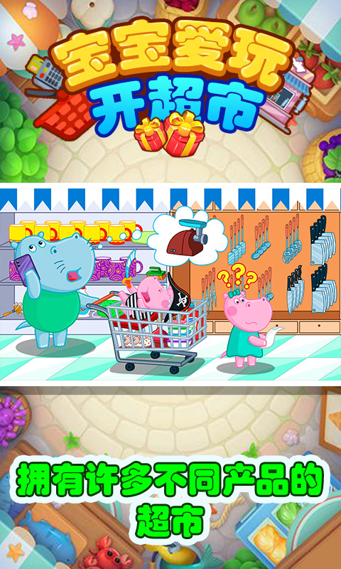 宝宝爱玩开超市是一款专为3-8岁儿童设计的趣味休闲教育游戏,通过模拟真实的超市购物场景,让孩子们在轻松愉快的游戏氛围中学习生活常识、培养数学思维、提升观察能力。这款游戏不仅画面精美、操作简单,还融入了丰富的早教元素,是家长陪伴孩子成长的好帮手。