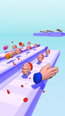 这款游戏巧妙地将童年经典游戏"石头剪刀布"融入跑酷玩法中,创造出全新的游戏体验。玩家需要在奔跑过程中实时切换手势形态,与沿途出现的各种对手进行猜拳对决。游戏采用卡通风格的3D建模,场景设计充满想象力,从丛林到太空,每个关卡都带来不同的视觉享受。特别设计的表情系统让角色互动更加生动有趣,获胜时的庆祝动作更是让人忍俊不禁。