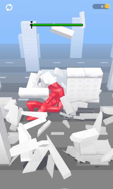 玩家化身巨人,自由破坏建筑、车辆等物体,释放压力。游戏特别设计了多种破坏方式,包括投掷、踩踏和特殊技能攻击,每种方式都会影响最终评分。