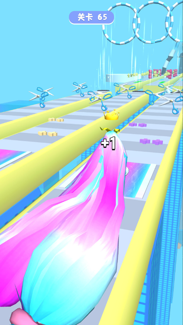 游戏最大的亮点在于其创新的障碍物设计,玩家不仅要躲避传统的障碍,还要特别小心各种剪刀陷阱。有趣的是,随着头发变长,玩家可以利用长发作为"武器"或"工具"来应对某些特殊障碍,这种互动设计大大增加了游戏的策略性。游戏关卡设计巧妙多变,每个关卡都有独特的挑战目标和隐藏彩蛋,等待玩家去探索发现。