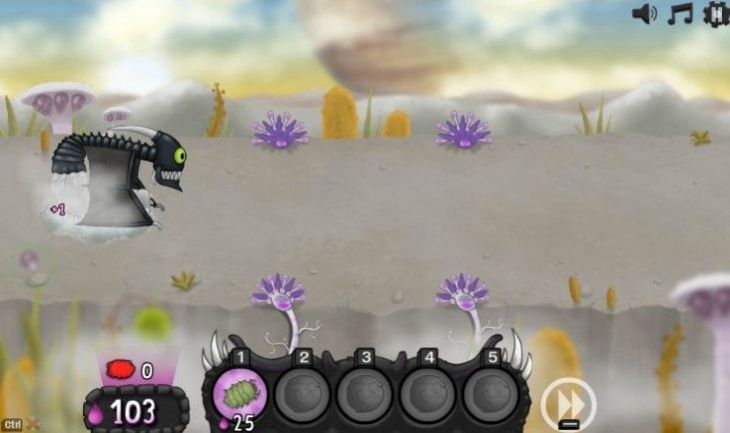 左边的虚拟按键用来控制虫子的移动,右边的按键可以强化攻击力,操作简单易上手。但是人类不会勉强,他们会派兵杀你,所以你需要各种防空武器,考验玩家的战略思维。注意虫子不能在外面长时间停留,一定要及时返回地面,伺机反击,增加了游戏的紧张感和策略性。