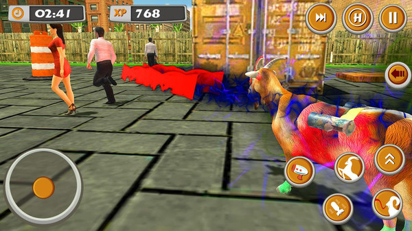 逼真的愤怒的山羊的声音:游戏收录了多种山羊叫声,从愤怒的嘶吼到得意的咩叫,为破坏行动增添更多趣味性。现代城市横冲直撞:精心打造的城市景观包含各种现代设施,让你在破坏过程中感受真实的物理反馈。释放你的疯狂的山羊:独特的技能系统允许玩家解锁各种破坏招式,从普通冲撞到特殊技能,让破坏方式更加多样化。