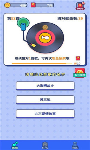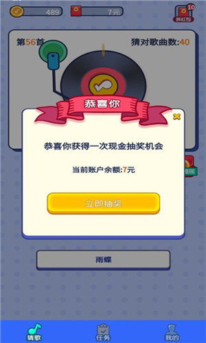 通过聆听歌曲前奏猜出歌名即可获得红包奖励,这种简单有趣的玩法让赚钱变得轻松愉快。游戏操作极其简单,新手也能快速上手,无需复杂的学习过程。玩家可以体验到音乐带来的各种乐趣,从经典旋律到潮流金曲,在游戏中感受音乐的魅力。丰富的奖励机制让每次游戏都充满期待,让娱乐时间变得更有价值。