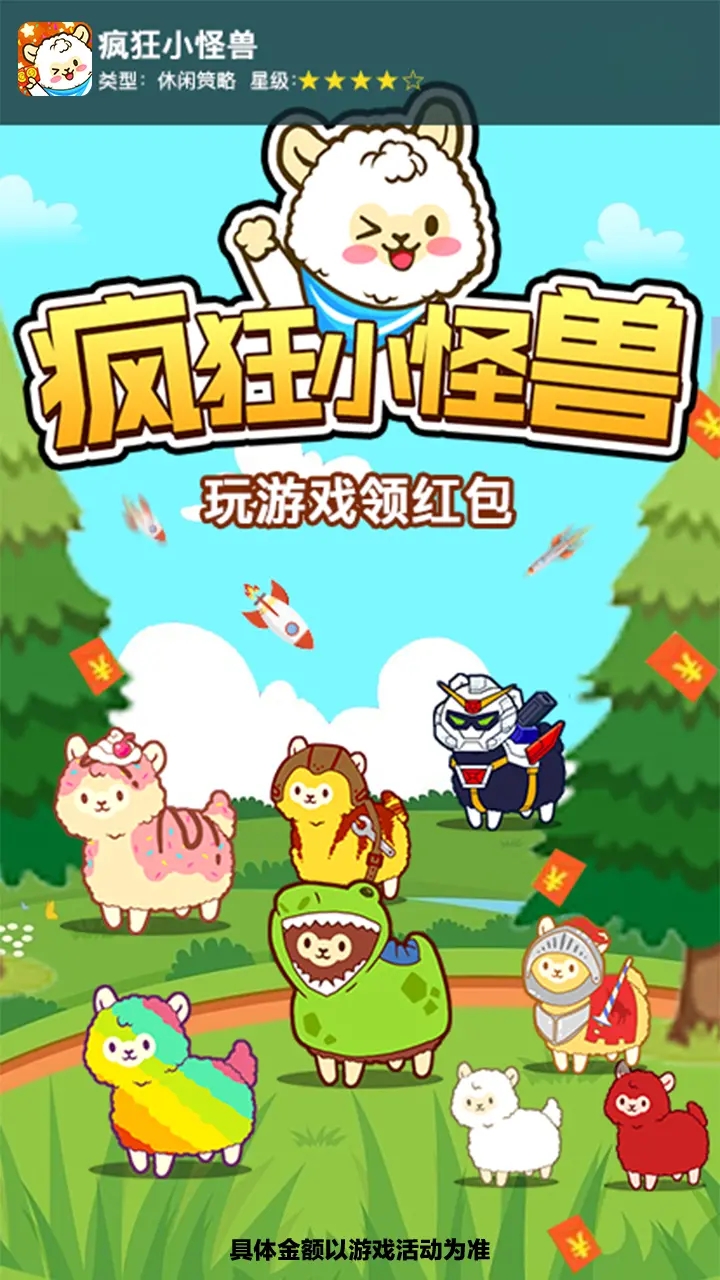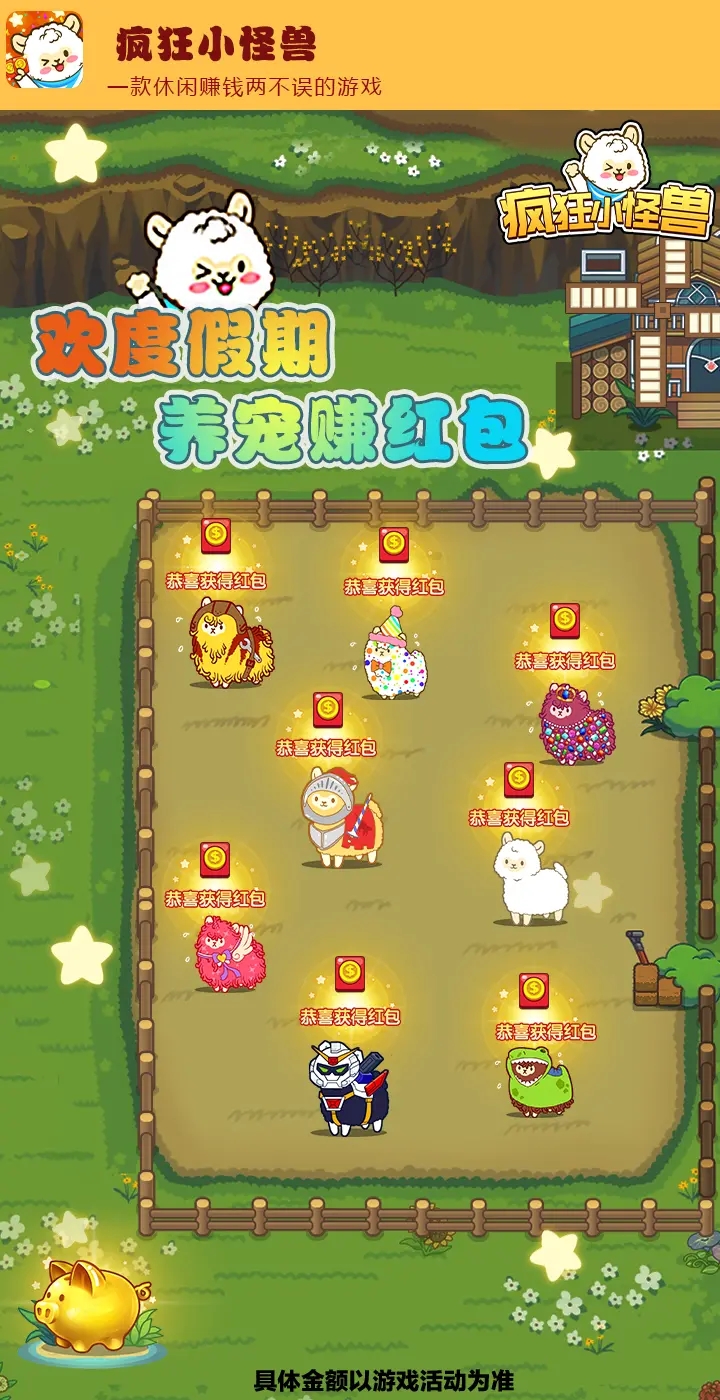 这是一款真正可以赚取红包的休闲游戏,完全零门槛,无需任何投资即可参与。玩家通过简单的合成操作,将低等级小怪兽升级为高等级怪兽,就能解锁丰厚红包奖励。游戏还设置了多种福利玩法,包括摇钱树、每日签到、集五福活动以及幸运大转盘等,让玩家可以通过多种途径获取红包奖励。所有红包奖励都真实有效,只要按照规则完成任务即可提现。