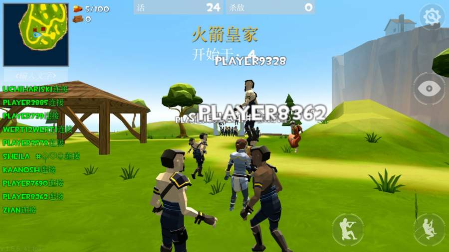 《皇家火箭》重新定义了皇家战斗类游戏的玩法规则。游戏的核心目标是收集资源建造火箭并成功飞离小岛,但这个过程绝非易事。玩家需要从坠落的流星中搜寻制作材料,同时还要提防其他玩家的抢夺。游戏引入了独特的建造系统,允许玩家使用收集到的木材等资源建造各种防御工事,从简单的围墙到复杂的多层堡垒,甚至是连接不同区域的天桥。这种创新的玩法为战术策略提供了无限可能,玩家可以根据战况随时调整防御布局。