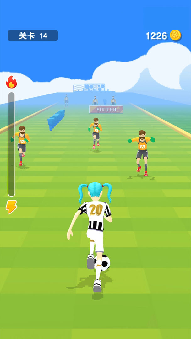 这是一款融合了跑酷元素的足球竞技游戏,玩家需要在激烈的比赛中与对手展开运球对决。在冲刺过程中,收集能量点可以提升角色能力,为最后的射门积蓄力量。游戏设置了多个难度级别的关卡,每个关卡都有独特的挑战和丰厚的奖励等待玩家解锁。同时,你还要提防对手的抢断,保持对足球的控制权,直到成功将球送入对方球门。