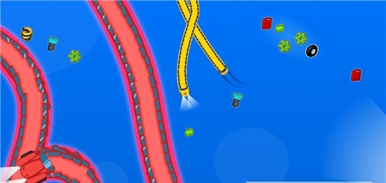游戏最引人入胜的特色在于其独特的成长系统。通过不断吞噬零件来增加战车长度,不仅能提升你的战斗力,还能解锁更多特殊技能和外观装饰。这种成长机制让每场对战都充满变数,即使处于劣势也有翻盘的可能。游戏的操作方式虽然简单直观,但配合上精妙的物理引擎和碰撞系统,使得每一次转向、加速都充满技巧性。地图设计也颇具匠心,从狭小的巷战区域到开阔的竞技场,不同大小的地图会带来完全不同的战术选择。特别值得一提的是,游戏中的"贪吃蛇模式"将传统玩法与现代竞技完美结合,为玩家带来既熟悉又新鲜的体验。