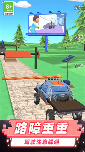 避免撞车,把车停到最完美的车位,操作很简单,玩家可以快速上手,但想要精通需要不断练习。每一个难度的地图都可以选择,没有复杂的设计,有的只是越野的精彩挑战,适合各个水平的玩家。竞速挑战给你有趣体验,一边前进一边学习技巧,这样玩起来才会更加的精彩,在比赛中不断提升驾驶技术。