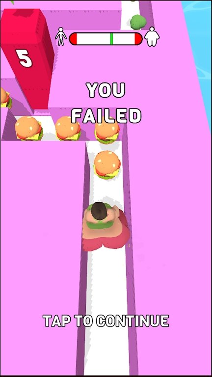 游戏采用独特的上帝视角设计,让玩家能够清晰判断最佳行进路线,巧妙避开高热量的汉堡陷阱。操作方式经过精心优化,只需简单滑动屏幕就能精准控制角色移动,响应速度极快,带来丝滑流畅的游戏体验。角色造型采用Q版橡皮人风格,动作夸张有趣,碰撞效果充满喜感。游戏画面色彩明快,食材建模精致逼真,搭配动感音效,营造出令人愉悦的游戏氛围。关卡设计充满创意,每个迷宫都有独特的机关设置和通关策略,保证玩家始终能获得新鲜感。
