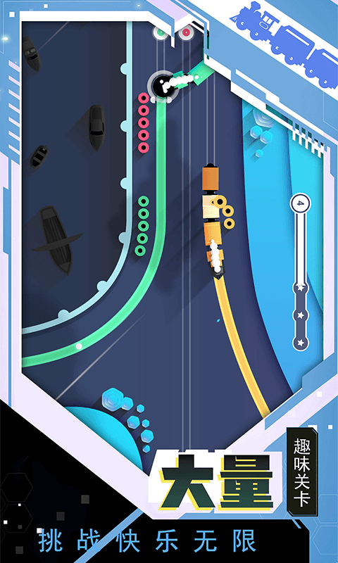 这是一款充满趣味性和挑战性的闯关游戏,游戏内设有大量形态各异的铁轨线路,从简单的直线轨道到复杂的交叉环形轨道应有尽有。玩家需要通过点击屏幕来指挥列车改变行驶方向,在确保列车安全抵达终点的同时,还要时刻关注每辆列车的剩余油量。随着游戏进程的推进,玩家将解锁更多新型列车和特殊轨道,游戏难度也会逐步提升,考验玩家的反应速度和规划能力。