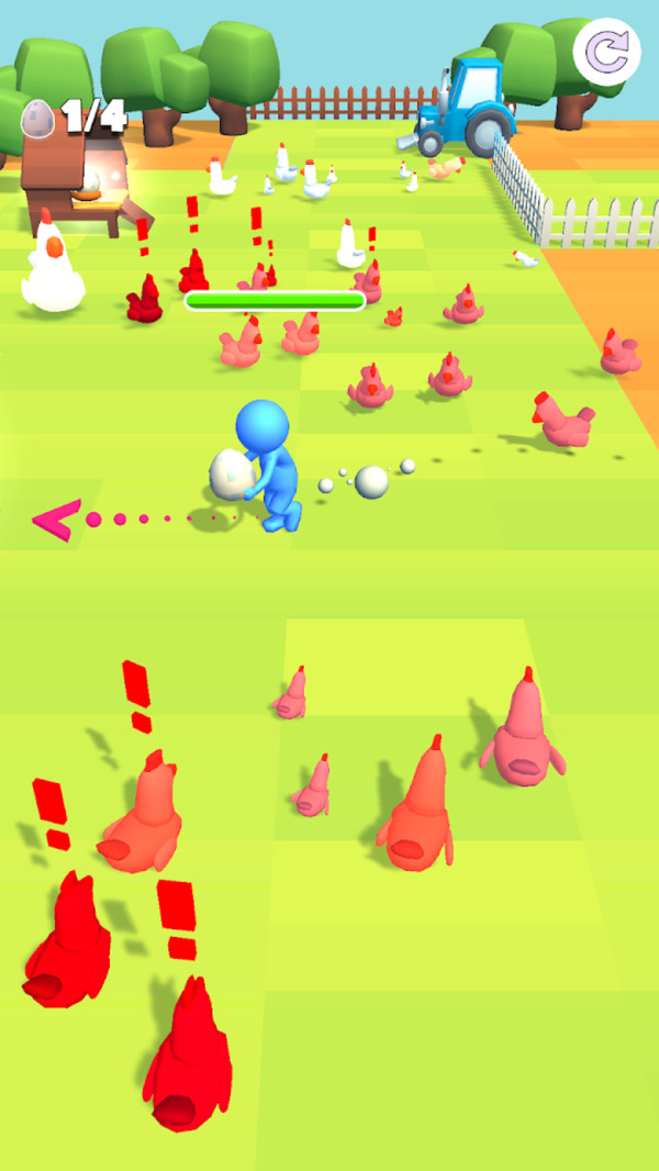 游戏采用精美的3D模型设计,每个鸡蛋都被刻画得栩栩如生。当你成功偷到鸡蛋时,可以看到它们活灵活现的样子;如果不小心打碎鸡蛋,飞溅的蛋白和蛋黄效果也十分有趣,为游戏增添了不少欢乐元素。
