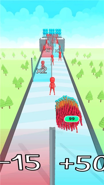 我弓箭贼多是一款充满魔性乐趣的休闲跑酷游戏,玩家需要通过滑动屏幕控制箭雨在跑道上疾驰,利用不断壮大的箭雨队伍消灭敌人,完成一场刺激的箭雨跑酷冒险。游戏开始时,玩家仅有一根孤零零的箭矢,当它穿过神奇的蓝色箭矢光幕时,箭矢数量会不断增加,箭雨的杀伤力也随之提升。每根箭矢都能轻松击败一个红色橡皮小人,而玩家拥有的箭矢越多,在闯关过程中就能保持更强大的战斗力,最终在面对蓝色橡皮人BOSS时给予致命一击。
