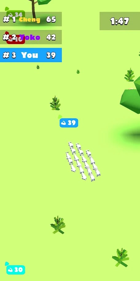 上下左右滑动屏幕控制动物的移动方向,获取食物让自己的数量增多,其他动物成为百兽之王,解锁更多的动物,让自己越来越凶猛。游戏采用直观的触控操作,让玩家可以轻松指挥族群行动。开局一只兔子,你要通过不断的获取食物来增加族群的力量,扩大自己的实力!随着族群壮大,可以解锁狮子、老虎等更强大的掠食者。然后吞没比自己势力弱小的动物群体,当然其他动物也会不断扩张,让森林变得拥挤不堪,所以快速扩张才能在这场百兽之争中获得的机会。游戏还设有多种特殊事件和随机挑战,为生存竞争增添更多变数。