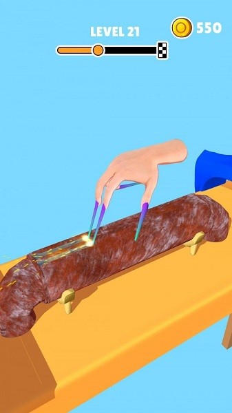 这款游戏将破坏艺术发挥到了极致,玩家可以操控那只长到离谱的指甲在各种场景中肆意妄为。从松软的面包到坚硬的水泥地面,从光滑的黑板到脆弱的玻璃,每种材质都会呈现截然不同的破坏效果和音效反馈。游戏采用直观的单指触控操作,只需轻轻滑动屏幕,就能看到指甲在各种物体上留下深浅不一的划痕,伴随着逼真的ASMR音效,这种破坏的快感简直让人欲罢不能。随着关卡推进,玩家还能解锁更多有趣的破坏场景,每个新场景都藏着意想不到的互动彩蛋。