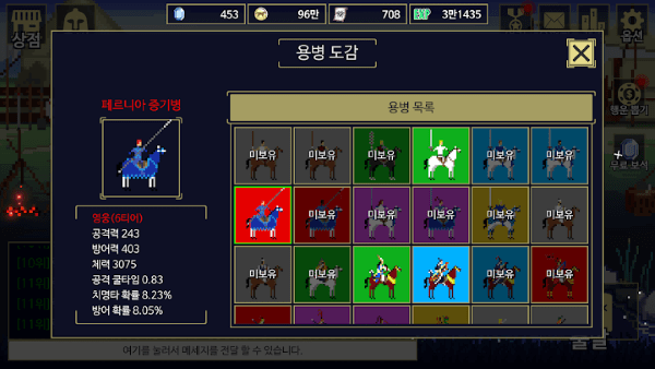 游戏最突出的特色之一就是丰富多样的马匹招募系统,玩家可以收集和培养数十种不同特性的战马。模拟养成玩法让玩家能够深度体验骑兵培养的全过程,从马匹的饲养到骑兵的训练都极具真实感。经典的像素风格游戏元素不仅带来怀旧的视觉体验,还赋予了游戏独特的艺术魅力。创新的放置战斗系统让玩家即使离线也能持续获得战斗收益,这种激情四射的战斗模式大大提升了游戏的可玩性。