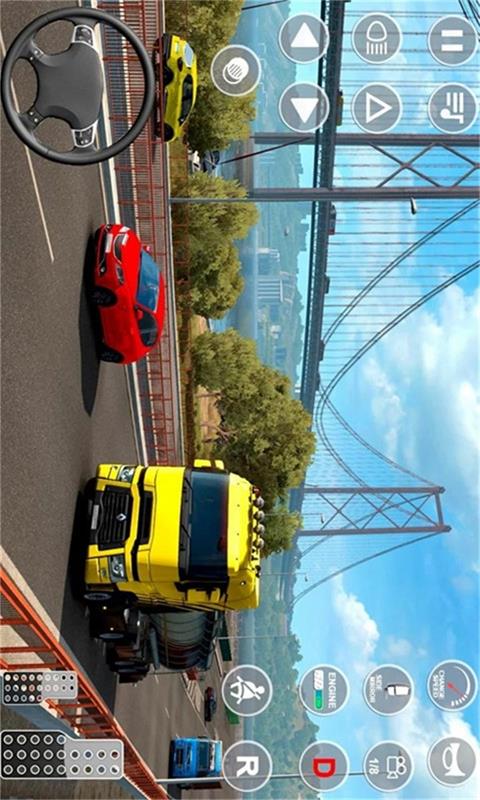 本作堪称移动端最专业的卡车模拟器,其物理引擎精准还原了空气悬挂的起伏感和挂车甩尾的惯性效应。任务系统深度结合现实物流业,既有标准化的港口集装箱运输,也有需要自行捆扎货物的散装运输。动态经济系统让玩家需要权衡油价、过路费和货物时效性,而改装系统则允许对发动机、变速箱进行专业级调校。特别值得称赞的是其支持外接游戏方向盘,配合驾驶座舱的按钮交互动画,为硬核玩家提供了媲美PC端的操作体验。
