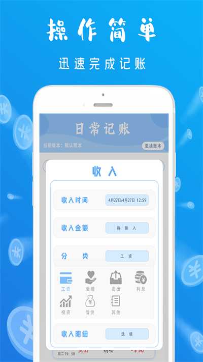 ·操作简单:优化后的交互设计,让记账操作更加流畅自然,迅速完成记录