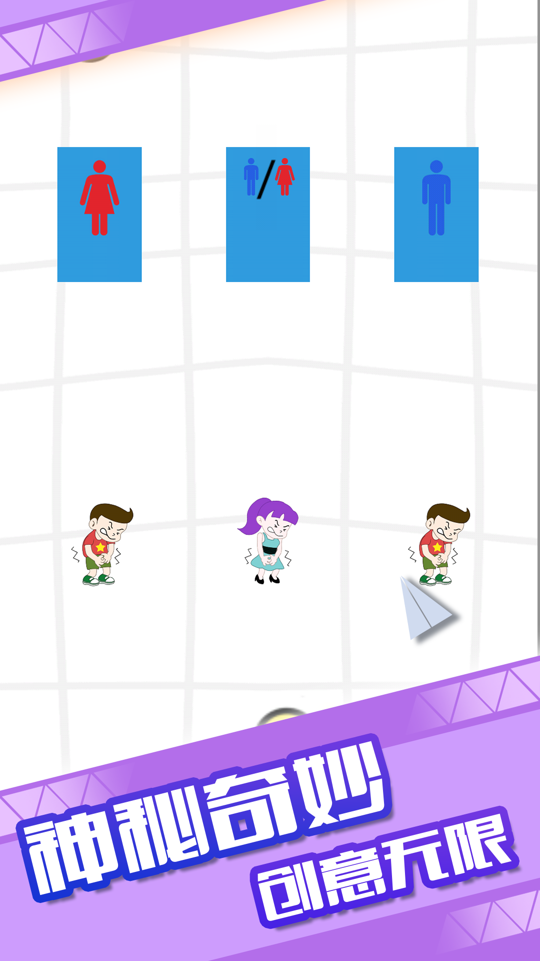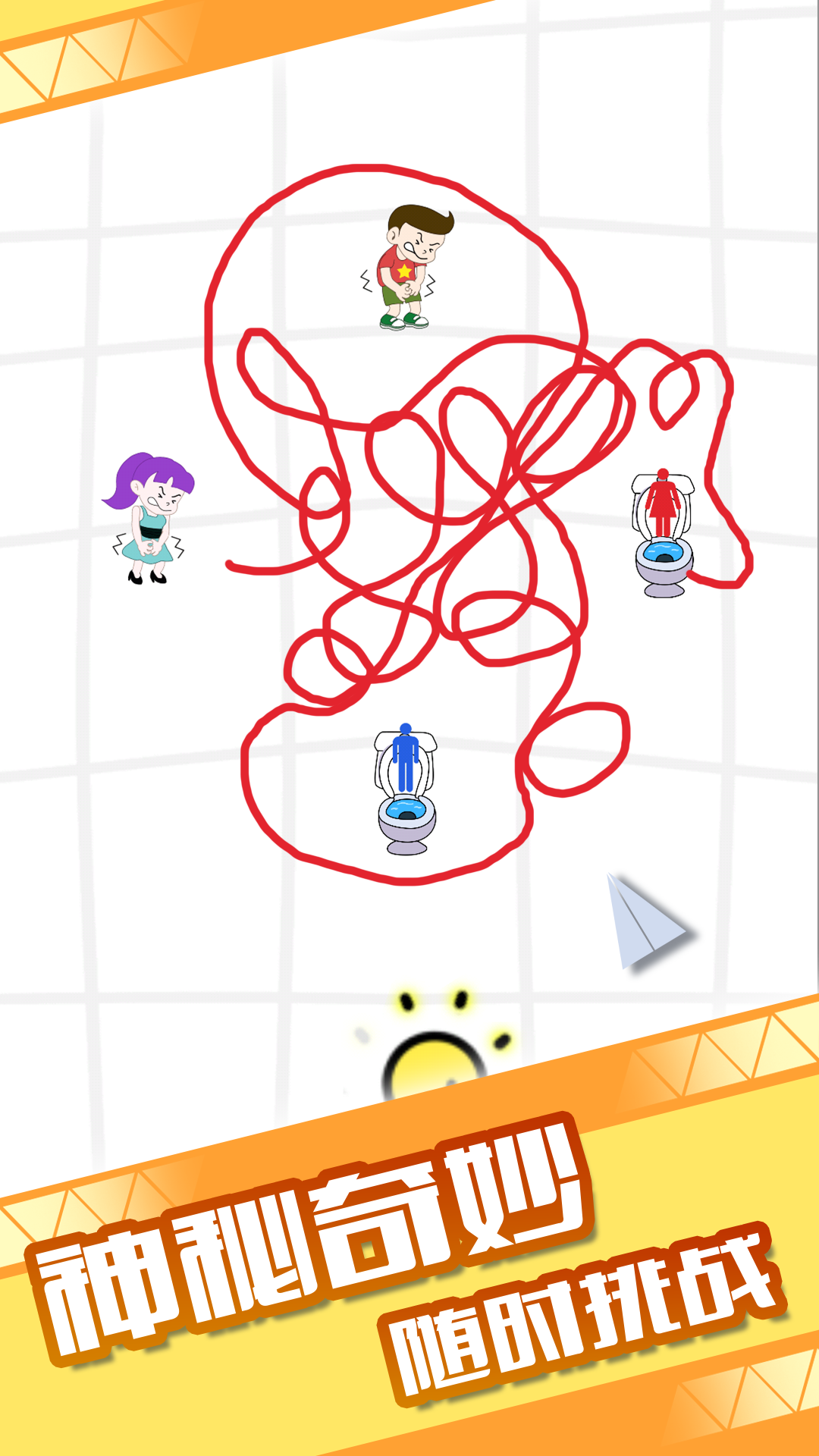 - 游戏采用极简操作设计,只需用手指在屏幕上滑动画线,就能指引角色前往厕所,操作门槛低但策略深度足;