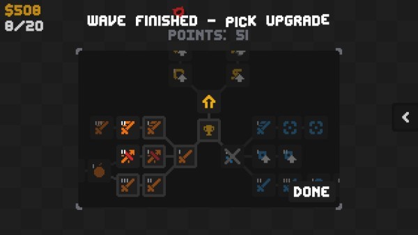 每当成功抵御一波敌人进攻后,玩家将获得宝贵的升级机会。游戏采用分支式技能树系统,玩家需要在射手路径和奥术路径等不同发展方向中做出抉择。这些选择将直接影响后续游戏体验,比如选择强化射手炮塔将无法同时发展奥术能力,因此玩家必须根据当前战况和长远规划做出明智决定。