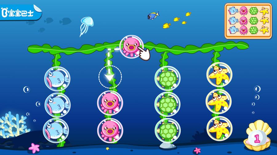 《宝宝移泡泡》将孩子们带入一个梦幻般的海底乐园,这里有会跳舞的水母、会唱歌的海星和爱捉迷藏的小丑鱼。游戏通过精心设计的关卡,引导小朋友认识海洋生物的同时学习颜色分类和空间定位。每个关卡都像一个小谜题,需要孩子们仔细观察左上角的提示图案,然后将彩色泡泡拖动到对应位置。随着关卡推进,游戏难度会循序渐进地增加,从简单的颜色匹配逐渐过渡到复杂的多步骤操作,全面锻炼孩子的逻辑思维能力。游戏还特别设计了鼓励机制,每当孩子完成挑战,都会有可爱的海洋朋友送上掌声和奖励。