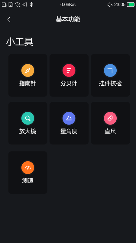 指南针:精准定位方向,户外活动必备工具;2、分贝检测:实时监测环境噪音水平,保护听力健康;3、挂件校准:帮助调整手机传感器精度;4、放大镜:支持自由缩放,方便查看细小文字;5、量角器:精确测量各种角度;6、直角尺:快速测量短距离长度;7、实时测试仪:多功能检测工具,满足日常测量需求。这些工具设计精巧,操作简单,可随时调用使用。