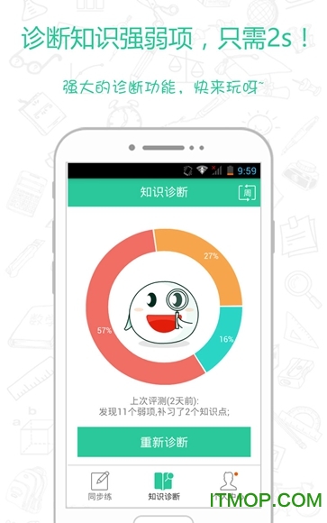 诊断知识强弱项,只需2s!强大的诊断功能,快来玩呀~通过智能算法快速分析你的知识掌握情况。