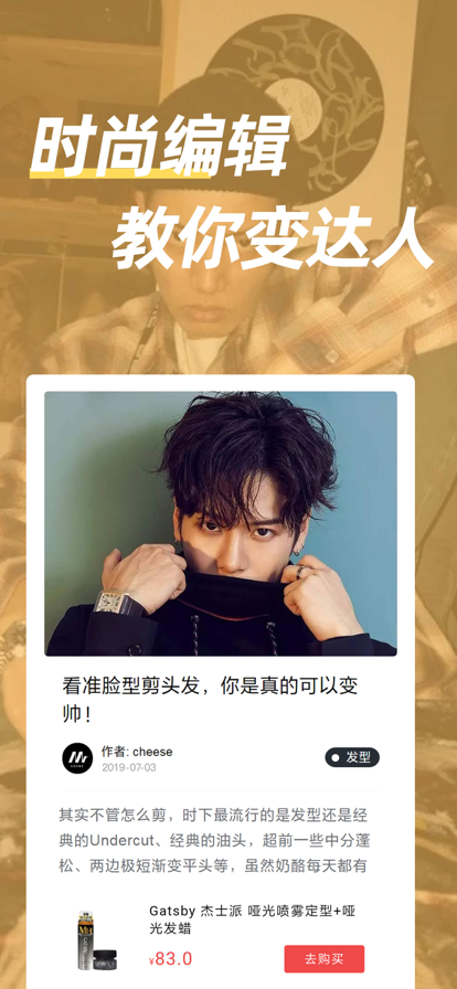支持各种搭配介绍,可以学习时尚、发型、打扮、撩妹等不同场合的穿搭指南;内容板块包含"一周穿搭挑战"、"明星同款解析"等特色栏目,还有心理学家参与打造的"第一印象穿搭法则"等专业内容。