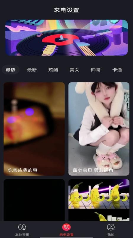 进入来电视频专区,预览各类特效,选择心仪的来电显示效果进行设置;