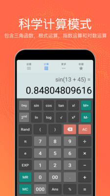 •高级模式提供存储键功能,科学计算中还包括三角函数、根式运算、指数运算和对数运算等专业功能