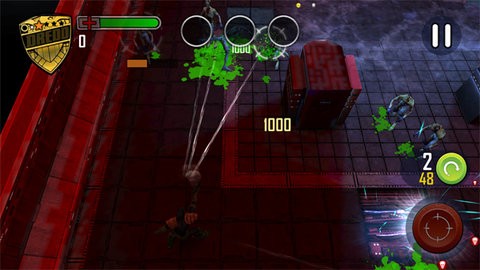 游戏采用经典的双摇杆操作方式:左侧虚拟摇杆控制角色移动,右侧设有射击和换弹按钮。屏幕左上角显示生命值,玩家需要时刻关注自身状态。游戏场景中散落着各种收集品,这些物品不仅影响最终评分,还能兑换特殊奖励。
