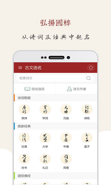 古文起名功能精选诗词歌赋、经典典籍中的优美字词,赋予名字文化底蕴;