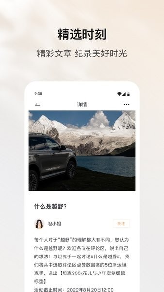 全新的坦克社区为车主和粉丝提供更好的沟通平台,在这里,发现同好、结交同好,共同分享车友精彩生活。支持图文、视频等多种形式的内容分享,打造活跃的越野文化圈。