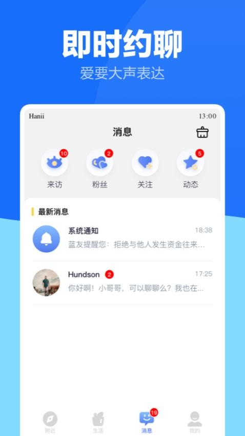 蓝友男同志App为男同志群体提供了一个安全、便捷的社交平台。丰富的功能设置和人性化的设计让交友过程更加轻松愉快。无论是寻找伴侣还是结交朋友,都能在这里获得满意的体验。平台定期更新的内容和持续优化的功能,确保用户始终能享受到高质量的社交服务。
