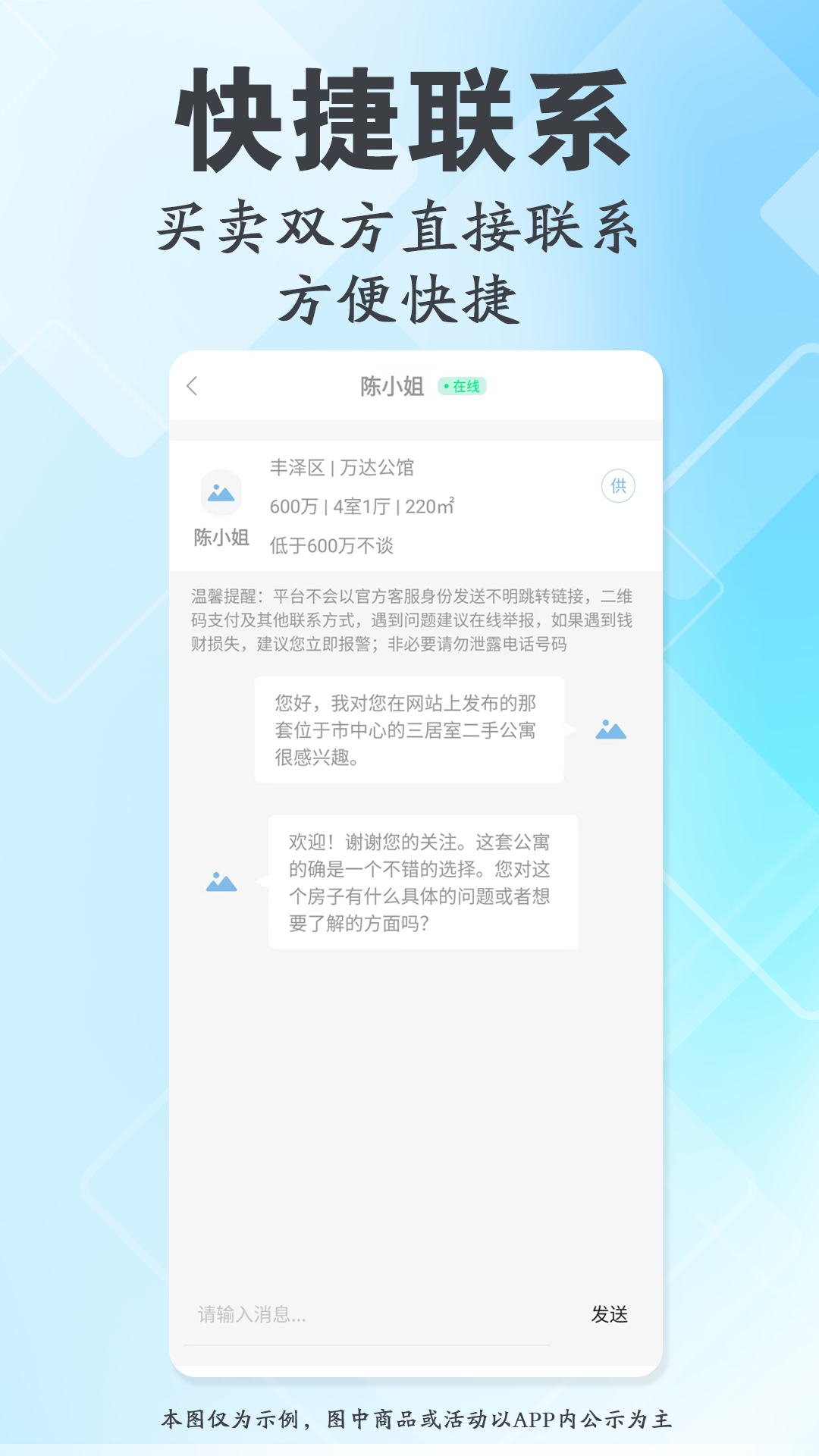 平台提供高效安全的联系方式,当用户对某房源感兴趣时,只需满足简单条件即可通过平台与发布者取得联系。系统采用隐私保护机制,在未达成交易前不会泄露双方的真实联系方式。平台还设有在线聊天功能,支持文字、图片等多种沟通方式,方便买卖双方详细交流房产信息。整个过程简单快捷,既保证了沟通效率,又维护了用户的隐私权益。