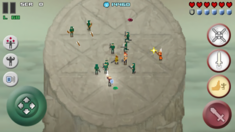 4、游戏舞台是在一个冰冷的祭坛之上,玩家要通过屏幕左侧的360度虚拟摇杆来控制你的角色,手持魔法之剑杀死各种敌人,并把他们扔下祭坛。独特的圆形竞技场设计增加了战斗的立体感和策略性,玩家需要时刻注意自己的站位和敌人的分布。