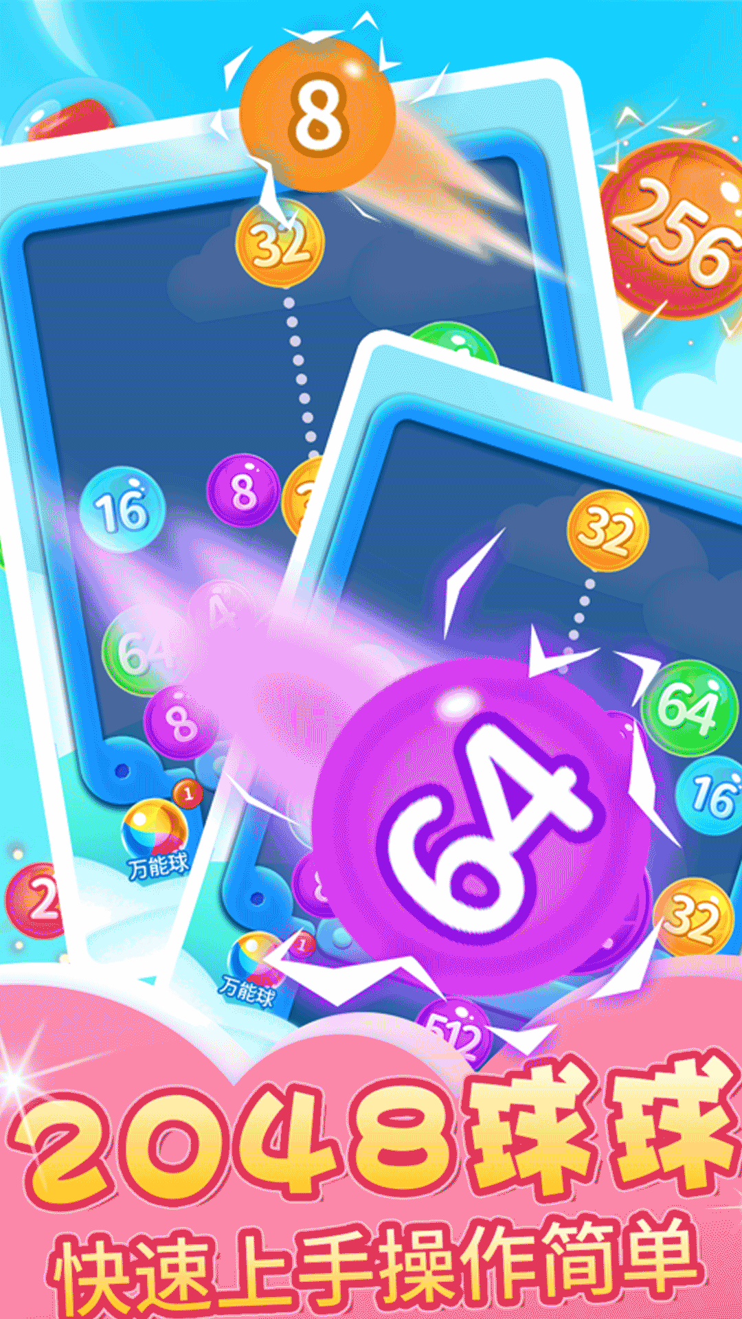 每个小球都带有特定数字,玩家需要运用策略将相同数字的小球融合升级,逐步向2048的目标迈进。