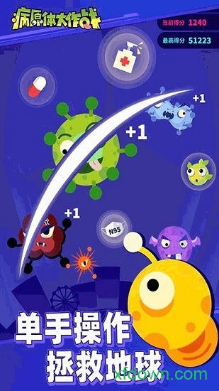 病原体大作战是一款将趣味性与科普性完美结合的休闲手游,采用卡通风格的画面设计,搭配流畅的操作体验,让玩家在轻松愉快的氛围中学习防疫知识。游戏中,玩家将化身勇敢的"病毒猎手",通过灵活操控手术刀来消灭各种形态的病毒。精心设计的关卡系统配合炫目的特效表现,带来极具沉浸感的游戏体验。无论是想放松心情,还是学习防疫知识,这款游戏都能满足你的需求。