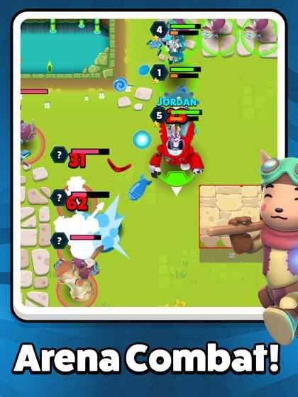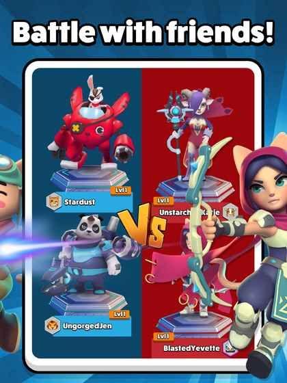 1、移动竞技场射击战斗:游戏采用创新的点触式操作,将MOBA与射击元素完美融合,打造快节奏的3v3对战体验。战斗场景设计精巧,地形多变,为战术运用提供了丰富可能。