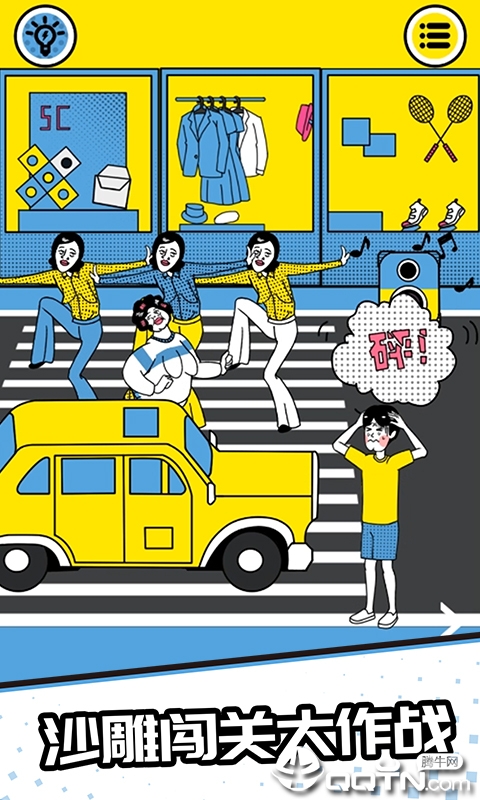 根据系统提示点击相应的道具,把它移动到音箱旁边,关闭音箱发出的音乐声。就算成功通关啦!游戏采用点触式操作,玩家可以自由探索场景中的每个角落。如果在游戏过程中遇到困难,系统还带提示喔,点击屏幕左上角的小灯泡可以获得通关贴士喔。这个沙雕游戏可以平时生活不愉快情绪,独特配音还可以舒缓情绪,快来挑战广场舞大妈吧!游戏还加入了成就系统,完成特定挑战可以获得搞笑称号和装扮道具,让玩家在解谜之余还能享受收集的乐趣。每日登录还能获得特别道具奖励,帮助玩家攻克难关。
