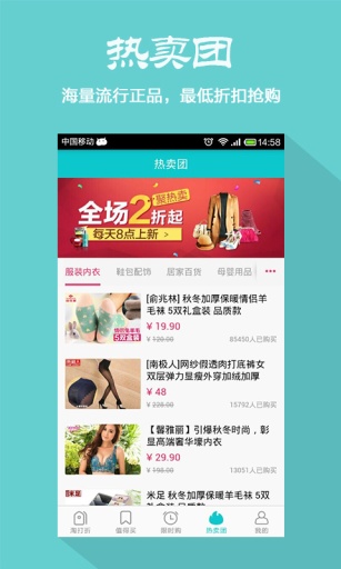 质量 淘打折严格把控商品质量,所有商品均提供正品保障和售后服务。应用采用智能图片压缩技术,在保证高清展示效果的同时大幅节省流量消耗。专业的商品筛选系统能帮助您快速找到优质商品,让购物既省钱又省心,真正成为您的网购省钱利器。