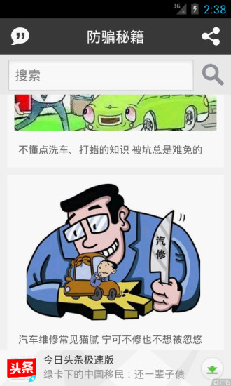 2.用车场景,提供买车、用车、养车全周期的知识干货。内容涵盖选车技巧、防骗指南、驾考攻略、违章处理、自驾游准备、省油妙招、保养常识、洗车打蜡技巧、赛车知识、改装建议、车险选择、故障排除、汽修指导等实用内容。这些场景化的知识帮助用户解决实际用车过程中遇到的各种问题,让汽车生活更加轻松愉快。