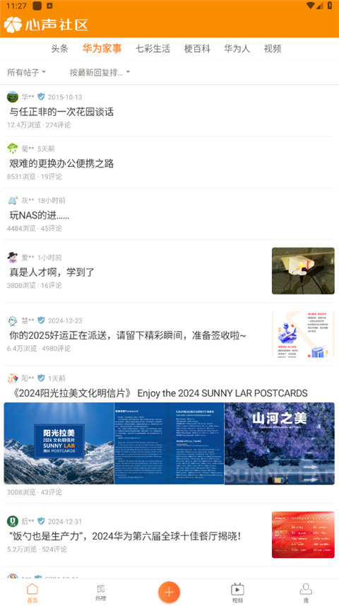 同时也能看到华为家事账号发布的文章,这些官方内容会带有特殊标识以便识别。