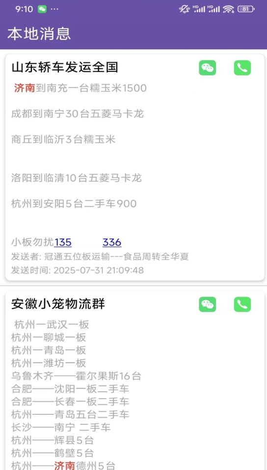 随时查看本地消息,实时为大家更新,查看很方便。消息记录会自动分类整理,支持按时间、类型等多种方式排序,让信息管理更加有序高效。