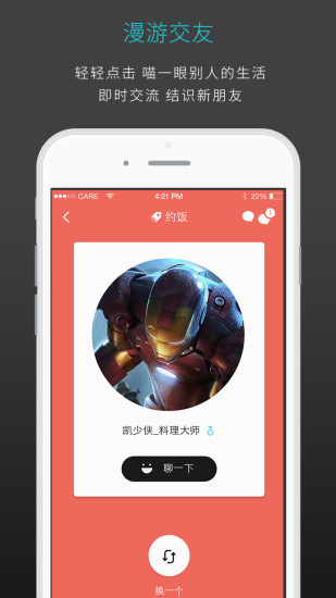 5、此时此刻,打开你的"此时此刻",逢良辰,遇良人,结良缘,开始一段有趣有品的生活。应用还特别设计了"惊喜时刻"功能,随机推荐你可能感兴趣的新鲜事物,为日常生活增添意外之喜。