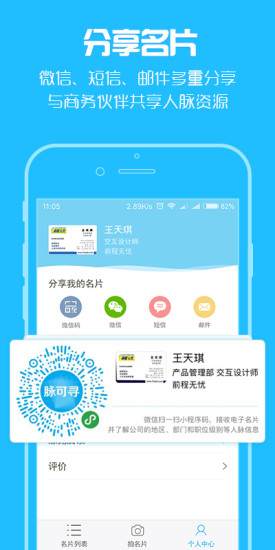 - 软件标签:脉可寻名片办公app