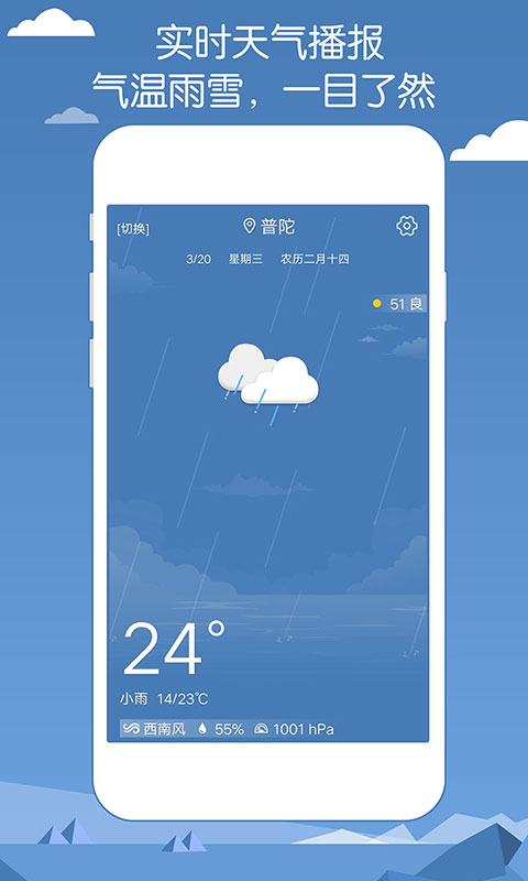 这款天气APP以轻量高效著称,运行过程中消耗流量少、耗电量低、占用内存小。采用先进的定位技术,能精确到街道小区推送天气预警信息。界面设计简洁直观,配有生动的天气动画效果,如下雨、打雷、闪电等场景,让天气信息一目了然。无论是界面美观度还是功能实用性都表现出色。