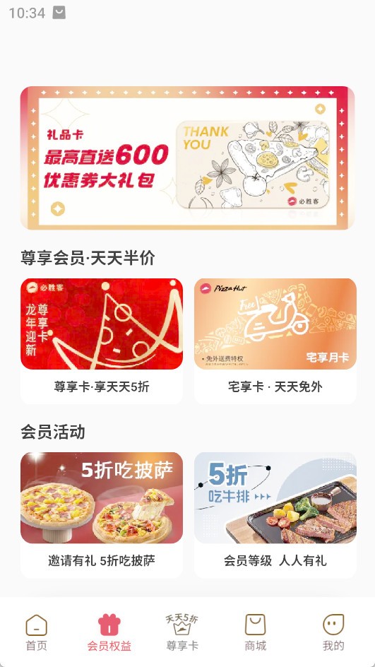 必胜客点餐APP设有四大特色商城:"优惠券商城"提供各类美食折扣券,"V金商城"可兑换精美礼品,"礼品卡商城"便于购买赠送亲友,"好物商城"则提供更多精选商品。会员权益方面,每消费1元即可获得100V金积分,这些积分可在V金商城中兑换丰富礼品。此外,会员还能享受生日特权、专属优惠等多项福利,让您的每一笔消费都物超所值。APP还会定期更新商城商品和优惠活动,确保用户总能找到心仪的选择。