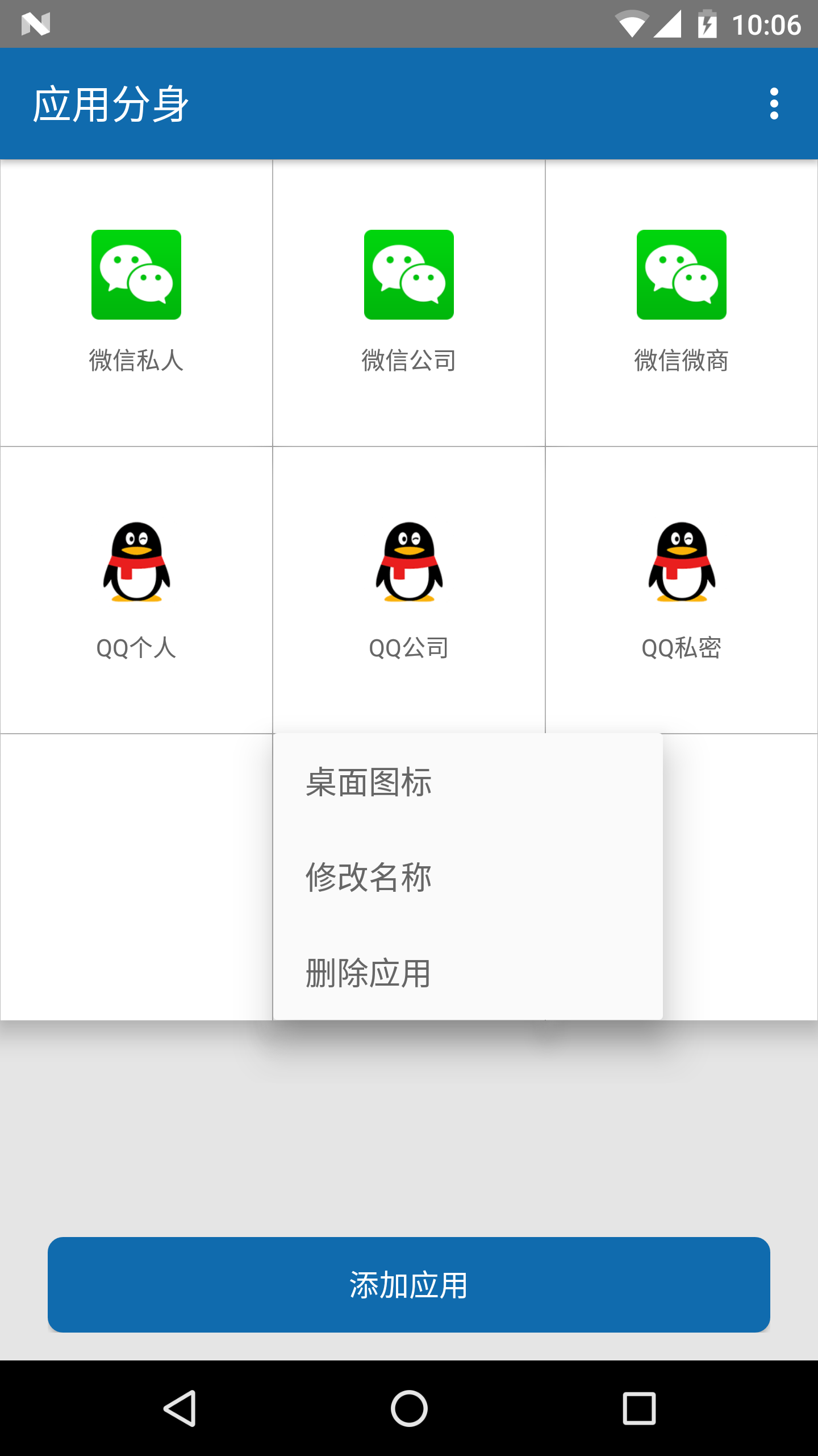 1.支持微信、QQ等社交软件的双开功能,用户可以同时登录私人号和商务号,实现工作和生活的完美分离,随时切换不同身份。